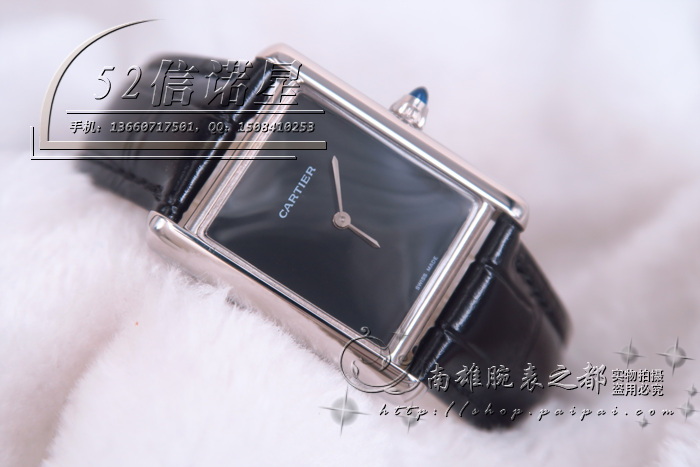 CARTIER卡地亚 坦克系列长方型WSTA0056腕表石英无刻度皮带情侣手表CR-124